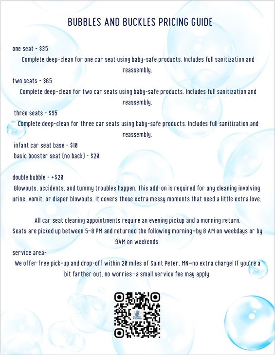 As parents ourselves, we know your child's safety comes first. Every cleaning is done to each car seats manufacturers specifications.